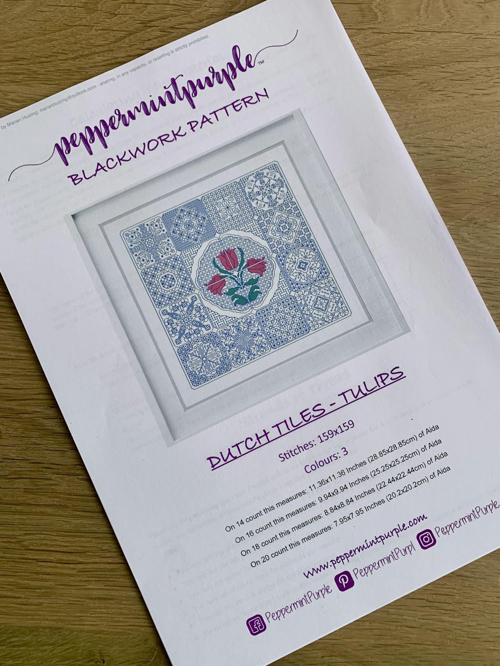 A beautiful Blackwork Pattern featuring stylised Tulips and Dutch Style Tiles.