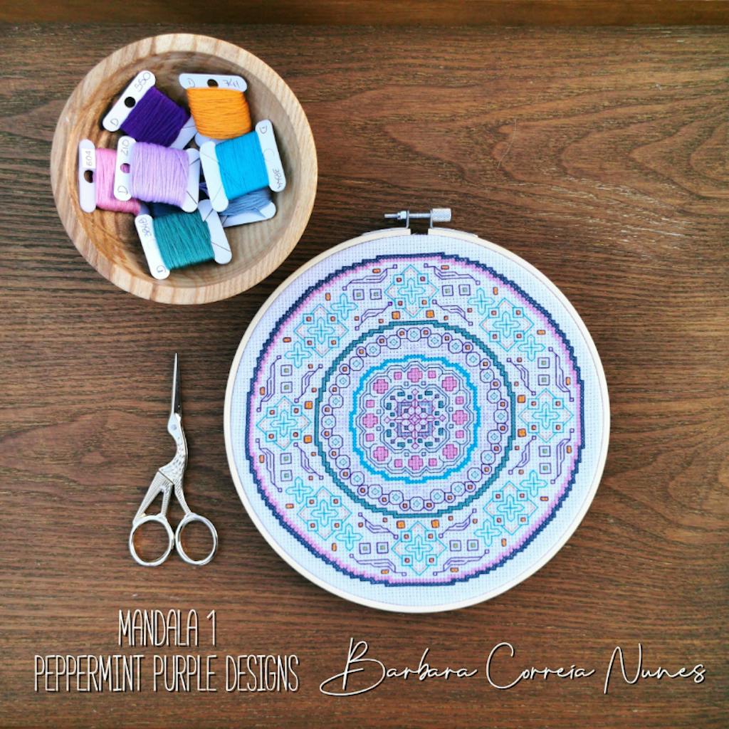 Beautiful Mandala created using Blackwork & Cross Stitches