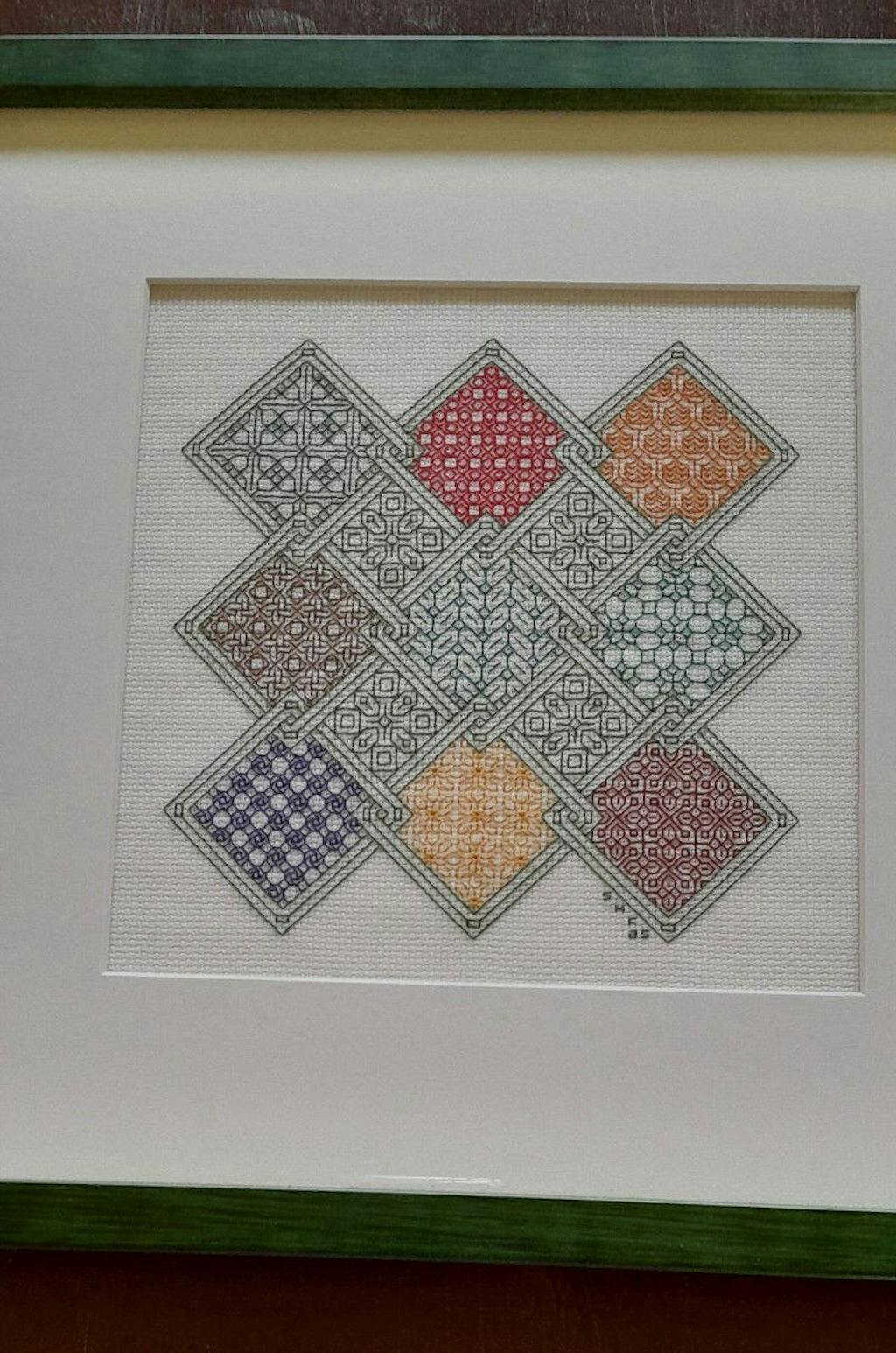 This design is : 101 x 101 Stitches On 14ct Material this will be : 7.22 x 7.22 Inches / 18.33 x 18.33 cm On 16ct Material this will be : 6.32 x 6.32 Inches / 16.04 x 16.04 cm On 18ct Material this will be : 5.62 x 5.62 Inches / 14.26 x 14.26 cm On 20ct Material this will be : 5.05 x 5.05 Inches / 12.83 x 12.83 cm
