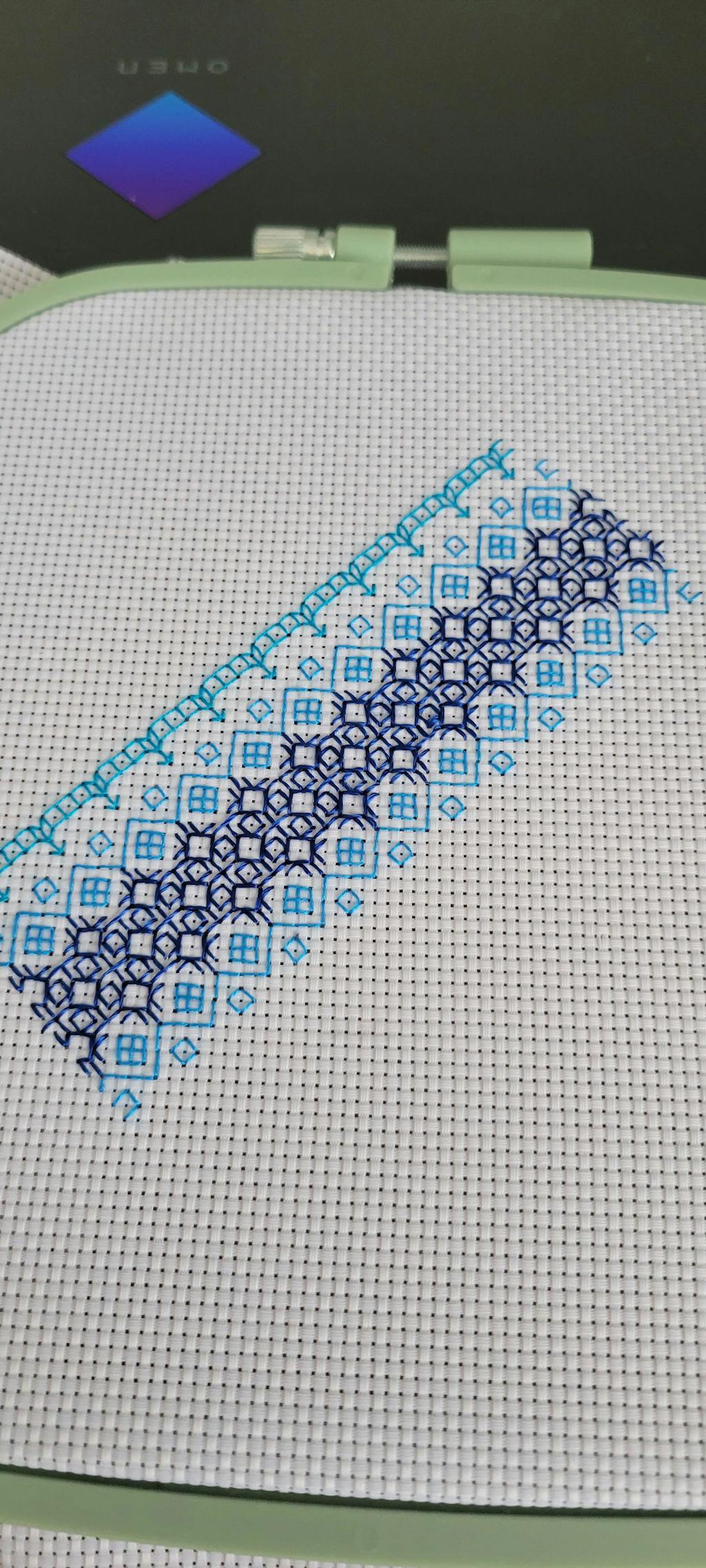 Diagonal themed blackwork design - perfect for swapping the colours and using up your orts!