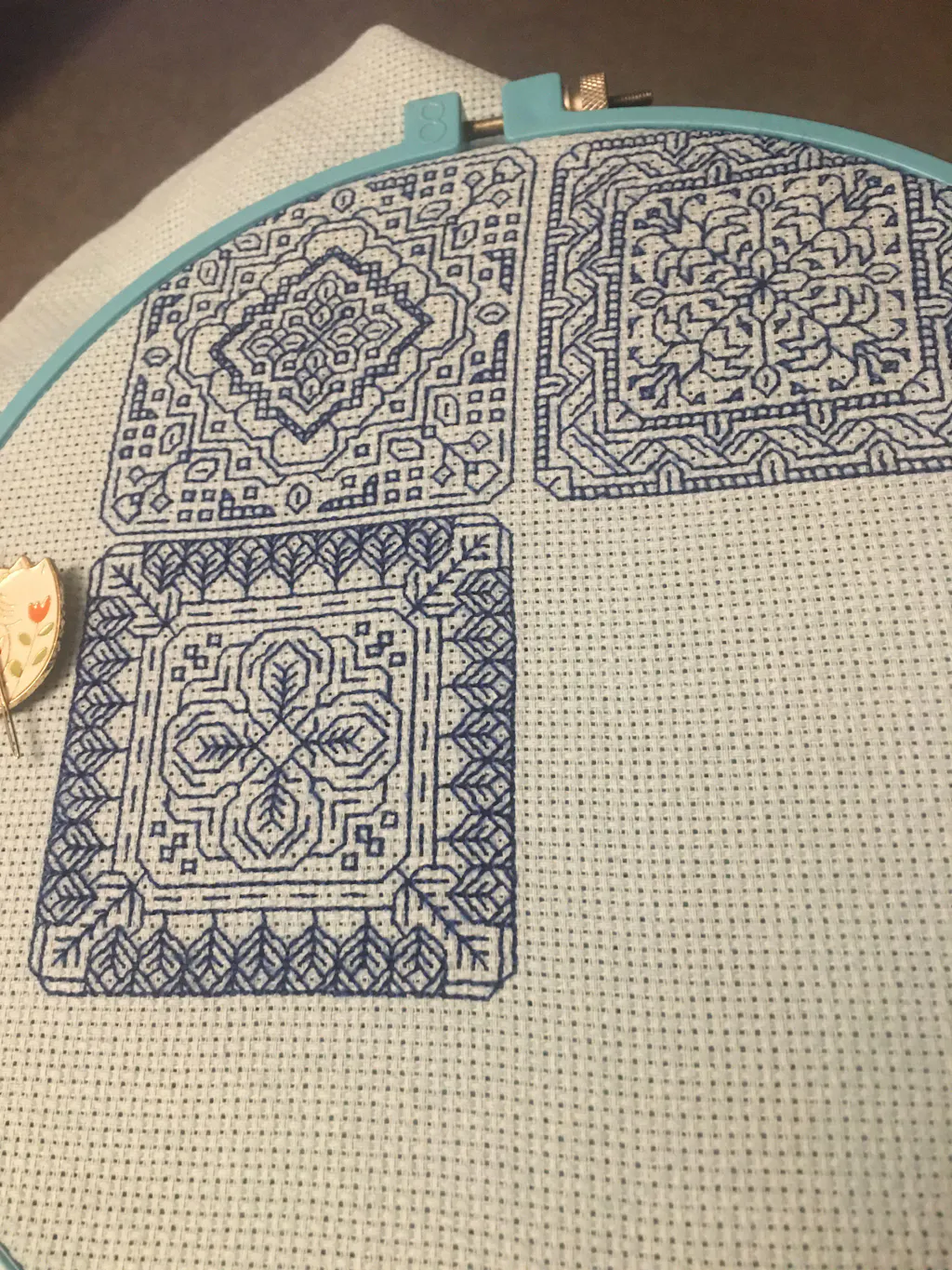 This design is : 110 x 105 Stitches On 14ct Material this will be : 7.86 x 7.5 Inches / 19.96 x 19.05 cm On 16ct Material this will be : 6.88 x 6.57 Inches / 17.47 x 16.67 cm On 18ct Material this will be : 6.12 x 5.84 Inches / 15.53 x 14.82 cm On 20ct Material this will be : 5.5 x 5.25 Inches / 13.97 x 13.34 cm