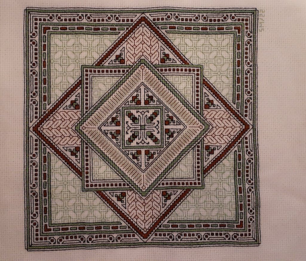 Gorgeous Blackwork Pattern using 4 colours and combination of Blackwork & Cross Stitch.