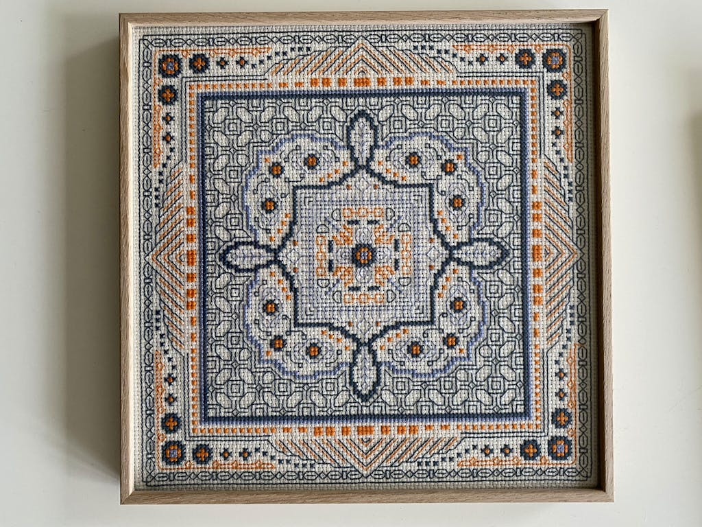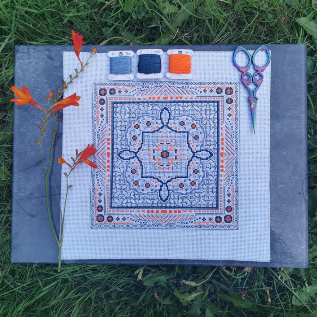 Gorgeous Blackwork Pattern using 3 colours and combination of Blackwork & Cross Stitch.