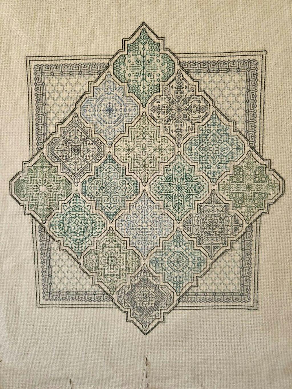 A while ago I was asked to create a Moroccan Tile Stitch-a-long; Moroccan tiles, from my research, tend to be a gorgeous tessellating shape and that is the characteristic I have used for this design.