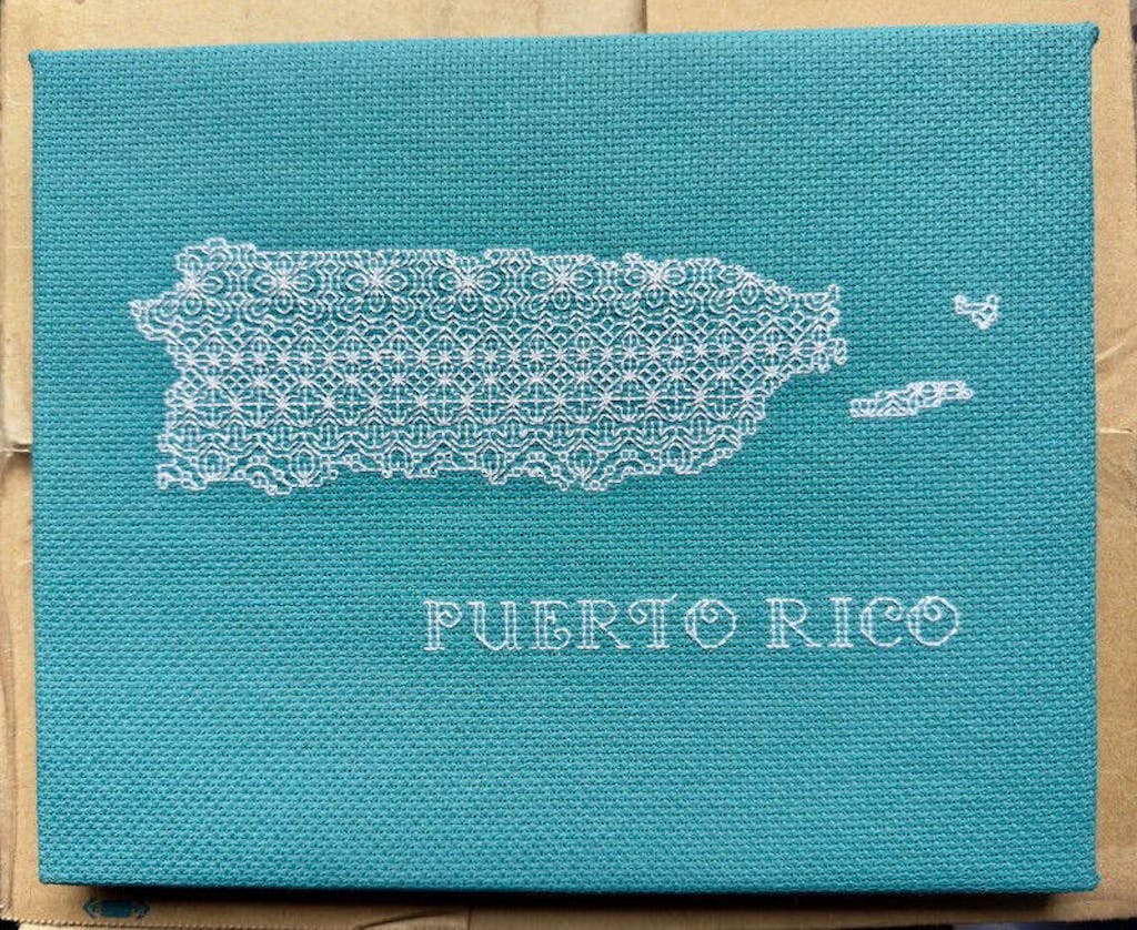 A lovely silhouette of Puerto Rico filled with a repeating blackwork pattern