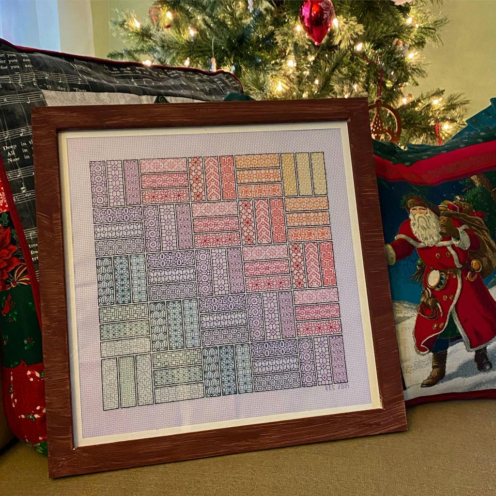 This was my first ever blackwork project and I found the instructions really clear and the pattern easy to follow. I made a few color changes just based on what I had on hand and one mistake. Woops! Some of the patterns were still definitely tricky which I really enjoyed. Some were breezy and some required focus the entire time. Loved seeing this come together and was hard to put down!