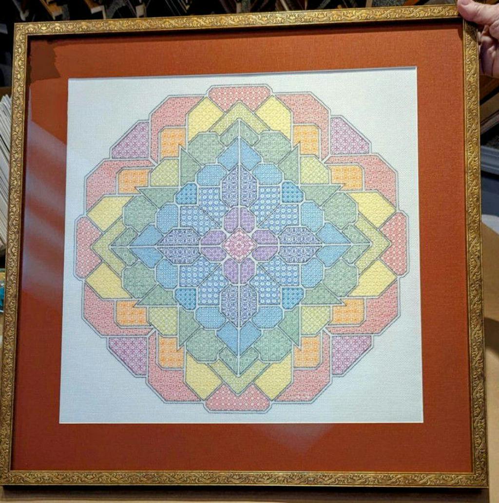 This design is : 286 x 286 Stitches On 14ct Material this will be : 20.43 x 20.43 Inches / 51.89 x 51.89 cm On 16ct Material this will be : 17.88 x 17.88 Inches / 45.41 x 45.41 cm On 18ct Material this will be : 15.89 x 15.89 Inches / 40.36 x 40.36 cm On 20ct Material this will be : 14.3 x 14.3 Inches / 36.33 x 36.33 cm